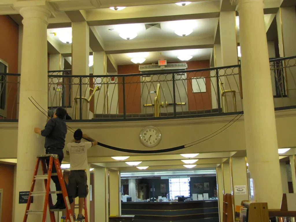 Three Black Circles in Air was a temporary indoor mural at the New Haven Free Public Library's Ives Main Branch at 133 Temple Street. The installation was a partnership of Site Projects and the Patrons of the New Haven Public Library. A second Varini artwork is located just across the New Haven Green.