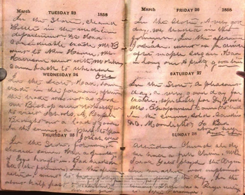 Others come in and out of his shop and home: customers and friends mentioned in passing, whose presence reveals the way a New England community of the mid-nineteenth century relied on careful manual labor for its members’ livelihood and enrichment. The voice of this diary sends whispers to the present through erasure poems that draw these themes to the surface.