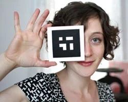 "Between Page and Screen explores the place of books as objects in an era of increasingly screen-based reading. The pages of this artist’s book contain no-text ‐ only abstract geometric patterns and a web address leading to this site, where the book may be read using any browser and a webcam. The poems that appear, a series of letters written by two lovers struggling to map the boundaries of their relationship, do not exist on either page or screen, but in the augmented space between them opened up by the reader." (from www.betweenpageandscreen.com/about)