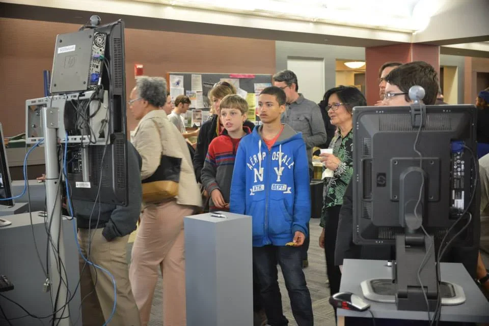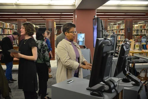 Whispering Galleries comes alive with each new visitor. Based on the diaries of an anonymous New Haven county shopkeeper from the 1850s, this viewer-activated digital artwork is accessed on a computer screen through a gestural interface, the LEAP motion controller, and experienced in augmented reality. Presented in honor of New Haven’s anniversary, and part of Connecticut at Work, a year-long conversation about the past, present and future of work life in Connecticut created by Connecticut Humanities, the artwork will shed light on the history of work in New Haven. The artists explain: "the voice of the diary sends whispers to the present through a series of erasure poems" and describe "the keeper of the diary" as someone who "worked with his hands: as a woodworker making handles for tools, sawing lumber, and sweeping out the shop; as a violinist making music at intimate gatherings and church occasions; and as a composer, writing pieces for performance at the local school. In daily entries, the author‘s week is measured out by hand–work."